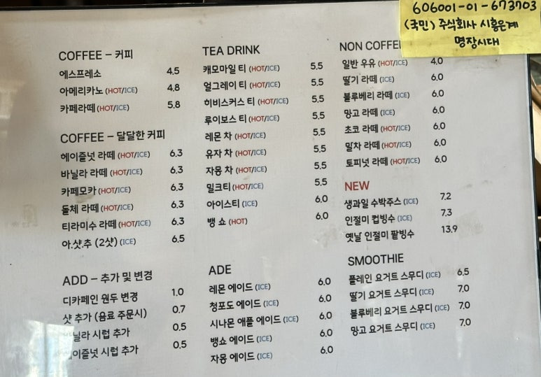 - 음료: 커피, 티, 에이드, 스무디 등 다양하게 선택 가능
